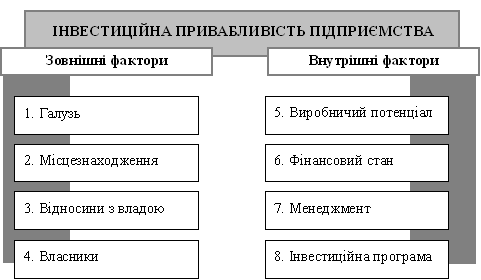 Рис. 3.6. Головні фактори, що впливають на інвестиційну привабливість підприємства