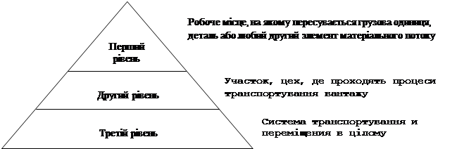 Третій рівень – система транспортування і переміщення в цілому, що охоплює ланцюг подій, за початок якої можна прийняти момент відвантаження сировини постачальником. Закінчується цей ланцюг при надходженні готових виробів у кінцеве споживання.
