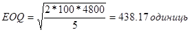 Таким чином, економічний розмір замовлення складатиме 439 деталей, а кількість замовлень у рік 11(4800/439).