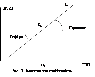Із рис 1 видно, що розмір бюджетних дефіцитів або надлишків, які виникають автоматично, залежить від тісноти зв’язку між ЧНП і податками.