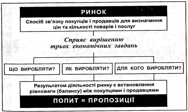 Ринок сприяє вирішенню трьох основних економічних завдань: що, як і для кого виробляти.