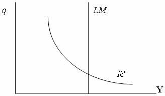 3) крива IS нахилена вниз зліва направо, оскільки при збільшенні курсу валюти чистий експорт, а з ним і всі сукупні витрати зменшуються, а при зменшенні, навпаки, збільшуються (між у та q існує обернена залежність).