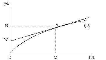 7) За основу взято виробничу функцію y=f(k), яка показує, що продукт з розрахунку на одного працюючого є функцією капітало озброєності і з’ясуємо чинники, які визначають капіталоозброєність праці.