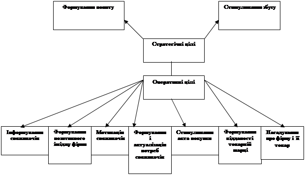 При формуванні системи маркетингових комунікацій необхідно визначити цілі комунікативної політики, які можна уявити таким чином: