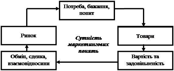 Щоб розібратися в цьому визначенні, розглянемо наступні терміни: потреба, бажання, попит, товар, цінність, споживча задовільненість, обмін, сделка, відносини та ринок.
