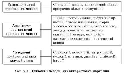 Отримання й аналіз емпіричних даних у процесі дослідження пов’язані з розробкою робочого інструментарію - сукупності методів і засобів збирання, обробки й аналізу інформації з метою перевірки робочої гіпотези дослідженням. У процесі розвитку маркетингу постійно використовувалися прийоми та методи з різних наукових дисциплін (рис. 5.3).