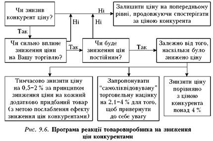 Підходи до оцінювання і розробки відповідних заходів щодо зниження цін конкурентами наведено на рис. 9.6.