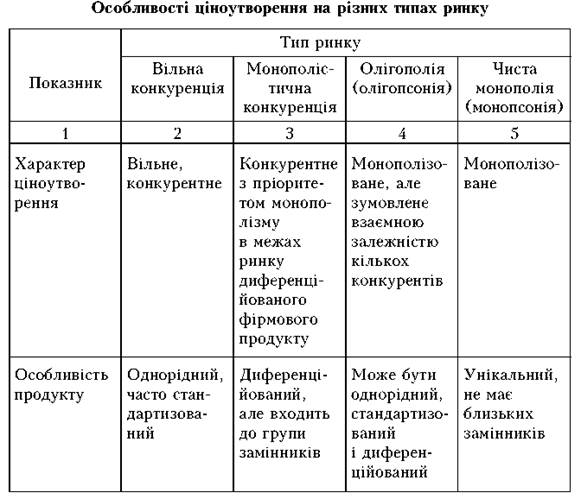 Роль маркетингової цінової політики в діяльності підприємства суттєво залежить від типу ринку (табл. 9.1).