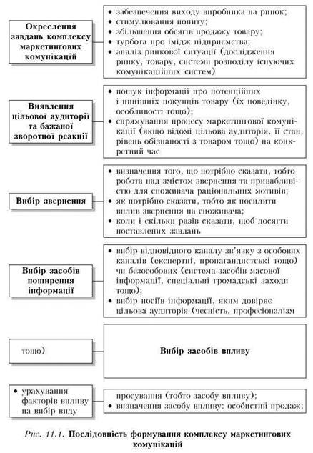 • розрахунок бюджету просування товарів. Послідовність формування комплексу маркетингових комунікацій наведена на рис. 11.1.