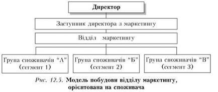 Організаційна структура, орієнтована на споживача, харак-терна для підприємств, ринки яких складаються з кількох великих сегментів (рис. 12.5).