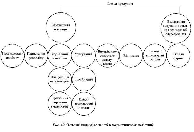 Основні види діяльності в маркетинговій логістиці наведено на рис. 10.