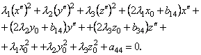 в (4.28). Ортогональне перетворення з геометричної точки зору є повертанням системи координат на такий кут, щоб осі координат збігалися з осями симетрії поверхні, якщо вона має три осі симетрії. У випадках двох осей симетрії - щоб дві з осей координатної системи збіглися з осями симетрії, у випадку однієї з осей симетрії - з однією з осей координат.