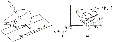 Рівняння дотичної площини і нормалі. У поверхні, заданої рівнянням