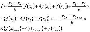 Метод Сімпсона найпоширеніший і широко застосовний для програмування. Його суть полягає в наближенні підінтегральної функції відрізками парабол.