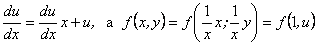 Р о з в ‘ я з о к. Це рівняння однорідне. Виконаємо у цьому рівнянні заміну залежної змінної
