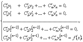 розв’язки однорідного рівняння, то вирази в дужках тотожньо рівні нулю; тому із останнього рівняння одержимо