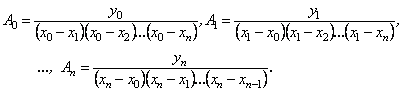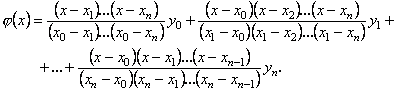 Підставивши знайдені значення коефіцієнтів у вираз інтерполяційного многочлена, одержимо інтерполяційну формулу Лагранжа: