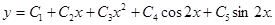 має корені k1=k2=ks=0, k4=2i, ks=-2i.згідно з теоремою маємо частинні розв’язки: у1=1, у2=х, у3=х2, у4=cos2x . y5=sin2x. Загальний розв’язок даного рівняння знаходимо з а формулою (14):