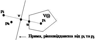 Якщо є дві точки pi та pj, то множина точок, більш близьких до pi ніж до pj, є півплощина, що визначається прямою, яка перпендикулярна до відрізка pipj та ділить його навпіл. Позначимо цю півплощину через H(pi, pj). Множину точок, більш близьких до pi ніж до довільної іншої точки, будемо позначати через V(i). Вона отримується в результаті перетину N - 1 півплощин. Ця множина є опуклим многокутником, який має не більш ніж N - 1 сторон.