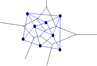 Вершини діаграми Вороного є центрами кіл, кожне з яких визначається трьома точками вихідної множини, а сама діаграма Вороного є регулярною (всі вершини мають однаковий ступінь) зі ступенем вершин, рівним трьом. Позначимо через C(v) коло, що відповідає вершині v.