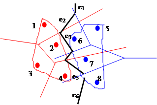 Означення. Нехай для заданого розбиття {S1, S2}множини S s(S1, S2) означає множину ребер діаграми Вороного, спільних для пар многокутників V(i) та V(j) діаграми Vor(S), де pi Î S1 та pj Î S2.