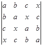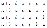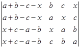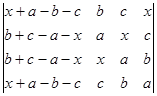 При b+c-a-x = 0, тобто x=b+c-a, перший стовпчик нульовий, а тому D= 0. Звідси x4=b+c-a – корінь D(x).