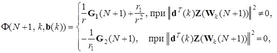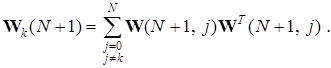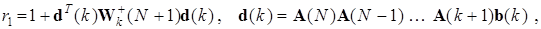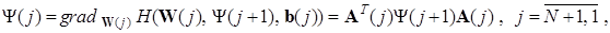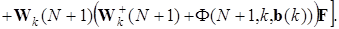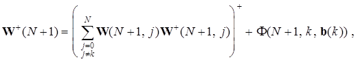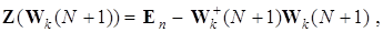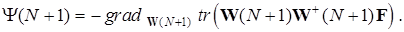 Для знаходження градіенту у формулі (12) від псевдооберненої матриці, скористаємося формулою рекурентного псевдообернення матриць [6]. З цією метою спочатку необхідно знайти градіенти по вектор-рядках матриці W(N+1) .Тоді матриця