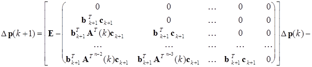 Методи визначення матриці підсилення модального регулятора наводяться в роботах [2, 4, 6, 9, 11] . Один з можливих методів визначення матриці модального регулятора зводиться до представлення шуканої матриці у вигляді ![]()