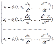 У загальному випадку, одержимо, що система диференціальних рівнянь першого порядку
