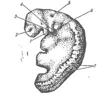 Зародковий (ембріональний) період (диференціація основних зачатків органів і тканин) — 4-8-й тижні після запліднення. У цей час тіло зародка цілком відокремлюється від жовткового мішка. Сегменти приосьової мезодерми, яких в ембріоні людини закладається 43-44 пари і які дістали назву сомітів, диференціюються на дерматом, клітини якого беруть участь у розвитку власне шкіри, мготом, з якого розвивається посмугована мускулатура, і склеротом, з клітин якого розвивається скелет.