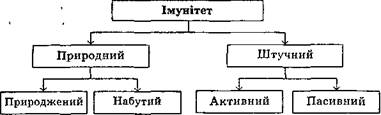 Розрізняють природний і набутий штучний імунітет. Природний буває активним і пасивним. Природний активний імунітет може виникати після перенесення інфекції і тривати місяцями, роками або все життя. Природний пасивний імунітет має новонароджений організм, набуваючи його від матері в період внутрішньоутробного розвитку.