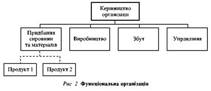 Якщо в процесі аналізу загального виробничого завдання за основу брати вид діяльності, то поділ цього завдання на складові здійснюється за сферами діяльності. Таку форму організації називають функціональною (рис. 2).