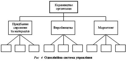 Поняття лінійності використовують для позначання відносин управління та підпорядкування, щоб унаочнити ієрархічну структуру організації. За однолінійної системи управління вища посада сполучається однією лінією з нижчою, тобто кожний співробітник отримує вказівки тільки від одного начальника (рис. 4).