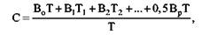 де ВІ5 В2, . — витрати за днями виробничого циклу; Вр— витрати, вироблені рівномірно упродовж виробничого циклу; Т — середня тривалість виробничого циклу, днів; ТІ5 Т2 — час від моменту разових витрат до закінчення виробничого циклу.