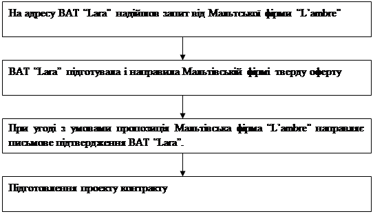 Безпосередньо в установленому контакту з Мальтською фірмою передувало маркетингове дослідження ринку Мальти. Встановлення контакту з Мальтською фірмою здійснювали в такій послідовності. (рис. 1)