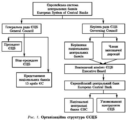 Європейська система центральних банків не є юридичною особою і не має власних керівних органів. Системою керують два органи ЄЦБ: Керівна рада і Виконавчий комітет (рис. 1).