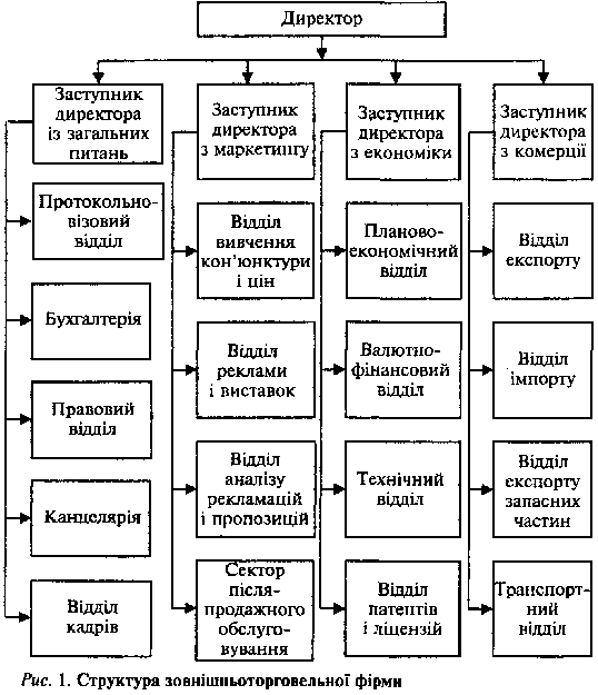 На відміну від зовнішньоторговельної фірми, відділ зовнішньоекономічних зв'язків є складовою системи управління підприємством-експортером. До його складу входять: протокольний відділ, відділ науково-технічного співробітництва, відділ маркетингу і ряд інших. До його основних завдань як органу управління належать: