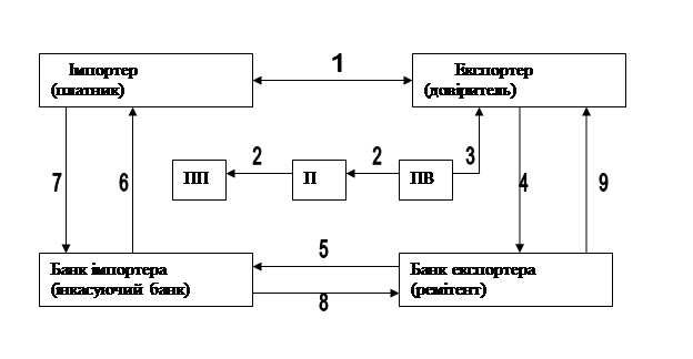 Розрахунки по інкасо регулюються міжнародними документами ”Уніфіковані правила по інкасо’’Форму розрахунку документарним інкасо можна зобразити схематично (рис.3.).