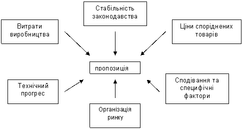 Пропозиція певного товару визначає взаємозв'язок між ринковою ціною і кількістю товару, що продається.