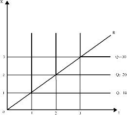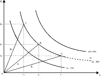 Якщо взяти два вхідних фактори К і L, то лише одна пропорція К/L, що відображає коефіцієнт технології, забезпечить виробництво даного обсягу продукції Q.