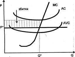 тому його обсязі (Q*), який максимізує прибуток. Фірма отримує економічний прибуток: