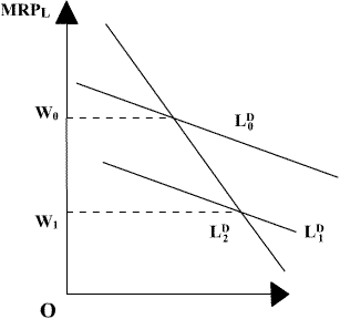 - явищем «похідного попиту» або зміною попиту на продукт, що виробляється за допомогою певного ресурсу. Серед чинників, що спричиняють зміну попиту на продукт, виділяють мікроекономічні (переваги, смаки, ціни тощо) та макроекономічні (фаза циклу тощо);