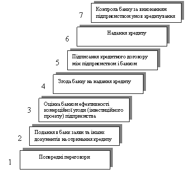 Підприємства отримують кредити на умовах терміновості, повернення, цільового характеру, забезпечення, платності.