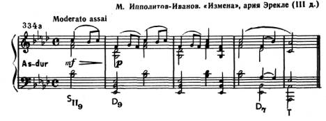 Див. дуже цікаві і виразні стрибки параллелізми з ряду нонакордів - SII9, D9 - в арії Еркеле Ля-бемоль мажор з опери «Зрада» М. Ипполитова-Иванова (дія III):