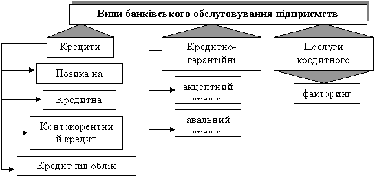 Підприємства можуть отримати різноманітні види кредитів та послуги кредитного характеру (рис. 1).