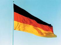 Прапор. Німецька держава - федеративна, і в кожної землі є свій герб і прапор, що відбивають традиційне різноманіття німецьких регіонів. Сполучення золотого, червоного і чорного кольорів уперше з'явилося в 1817 році як символ німецьких студентських корпорацій. Ці студентські об'єднання боролися за національну єдність і політичні свободи в Німеччині. Завдяки пісні "Ми побудували чималий будинок", написаної Августом Даніелем фон Бінцером, була закріплена послідовність кольорів: чорний, червоний, золотий. Під час Гамбахського свята у 1832 р. вже ніхто не сумнівався, що це кольори національного прапора. У 1949 р. Парламентська рада вважала загальноприйнятим, що саме традиційний чорно-червоно-золотий триколор є для Німеччини символом волі і єдності.