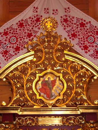 Хрест "Сонце Правди" над кіотом з іконою "Перший день створення світу"