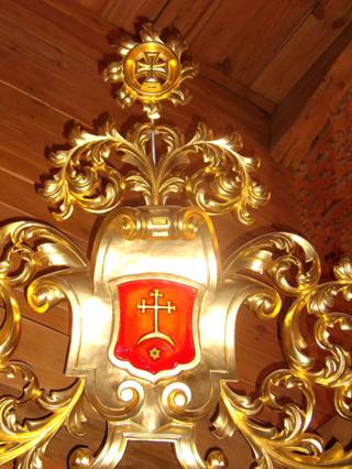 Хрест "Сонце Правди" над кіотом з гербом першого Гетьмана українського козацтва князя Дмитра Вишневецького (Байди)