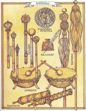 Військові відзнаки. Відзнаки козацького війська звалися клейноти. За клейноти цілого війська уважали гетьманську булаву й бунчук, печать, корогви, бубни і труби, деколи також і козацьку »гармату«, тобто артилерію. Ці ознаки своєї влади запорозьке військо незвичайно цінило і ховало їх з великою пошаною. Назву "військових клейнотів" стрічаємо від 1630. років аж до кінця козаччини. В 1637. р. гетьман Павлюк писав до козаків: »3волите писати до нас, товаришів своїх, відказуючи за військові клейноти, цебто за гармату . Взяли ми її як свій власний клейнот і скарб військовий, і поставили на звичайному місці, там, звідкіль і пішла вона за предків наших, славної пам’яті старинних, добрих молодців війська запорозького", Як козаки 1638. р. програли битву під Боровицею, »в бою стратили, гармату, корогви, комишини, печать, - клейноти всі королями надані«. В 1727. p., коли мав відбутися вибір гетьмана, старшина несла врочисто »клейноти гетьманські« — булаву, бунчук, корогву, значок і печать«, — несли з великою пошаною »на подушках, тафтою червоною укритих«. Таксамо й нижча старшина мала свої відзнаки: полковник — пірнач, корогву і значок, сотник — корогву.