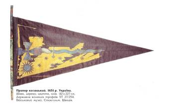 Подані зображення козацьких прапорів відомі дослідникам давно. Уперше цей матеріал опрацював і ввів у науковий обіг Я. Ісаєвич1. Посилання на ці документи, графічне зображення прапорів останнім часом неодноразово траплялися в окремих публікаціях. Однак широкому загалу вони все ж таки маловідомі. Хвилює те, що вперше з середини XVII століття ці прапори відтворюються в кольорі, повертаються на рідну землю в усій своїй красі, нехай поки що лише намальованими. Сьогодні вони можуть зійти зі сторінок журналу й знов замайоріти над славними колись козацькими містами.